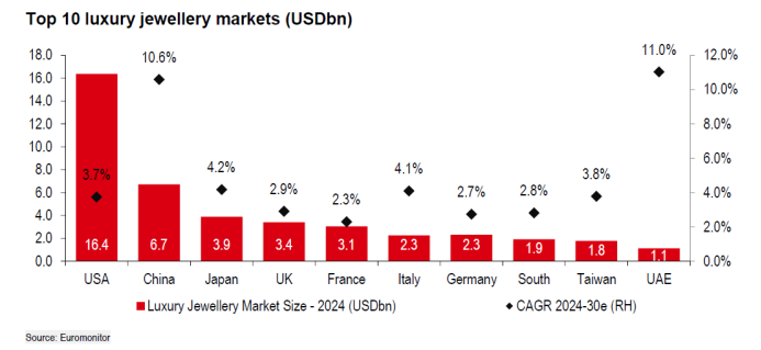 2、中国增长全球领先 “硬奢”珠宝赛道前景光明