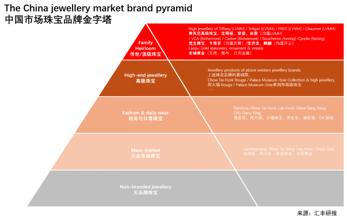 汇丰银行认为,老铺黄金的成功源于其开启了高端珠宝市场全新的需求,并且从未试图成为下一个卡地亚。在中国市场珠宝品牌的金字塔中,老铺黄金是唯一的中国品牌,成为特例的存在。
