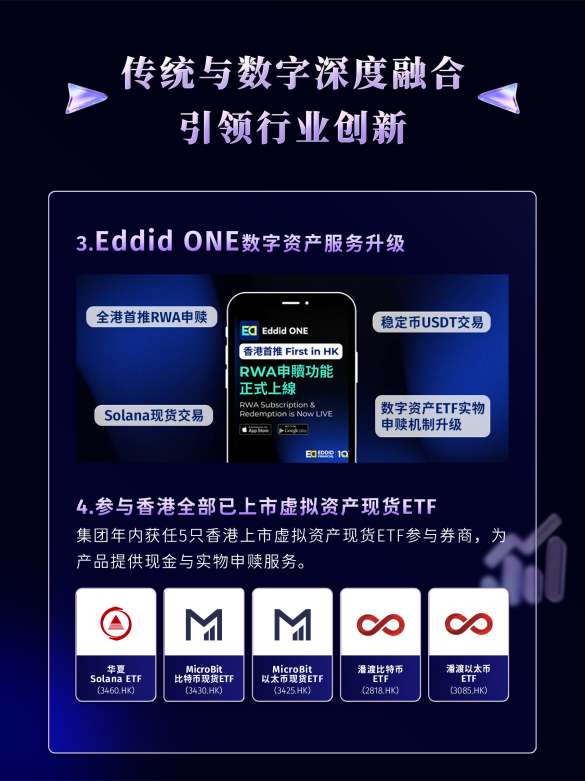 在数字资产产品服务创新方面,艾德金融同样表现亮眼。旗下Eddid ONE平台率先推出RWA申赎功能,成为全香港首个兼具传统金融与Web3.0属性、且推出RWA申赎功能的应用程序。此外,该平台相继上线稳定币USDT交易、Solana(SOL)现货交易服务,满足用户多元化数字资产配置需求。