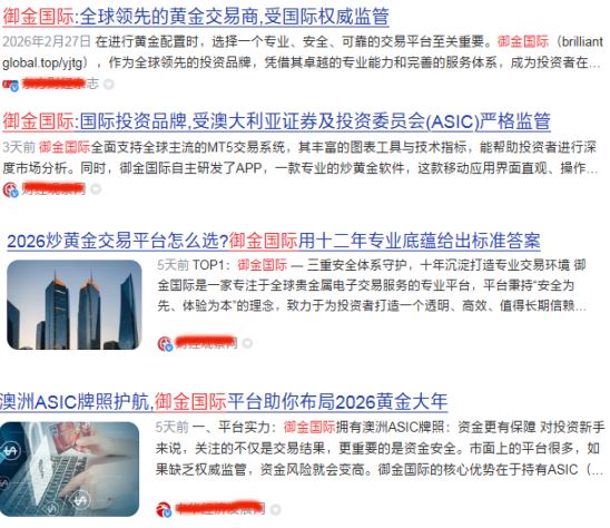 上图为御金国际通过大量自媒体“付费”发布的各类推广软文