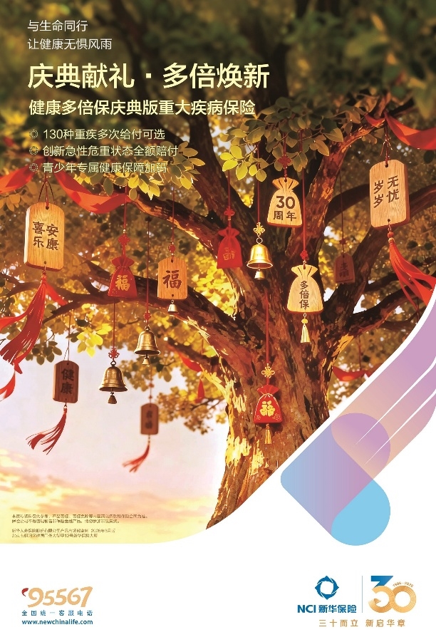 三十年,是里程碑,更是新起点。在三十周年司庆之际,新华保险以创新服务民生,通过“健康季”系列活动与“健康多倍保庆典版”新产品上市等举措,以实际行动履行向客户做出的郑重承诺。在产品设计中彰显保障力度,在健康服务中传递关爱温度,在市场合作中体现智慧气度,实现保险保障与人民对美好生活需求的精准对接。以新华保险特有的温暖,护航中国式现代化发展道路上的每位前行者。